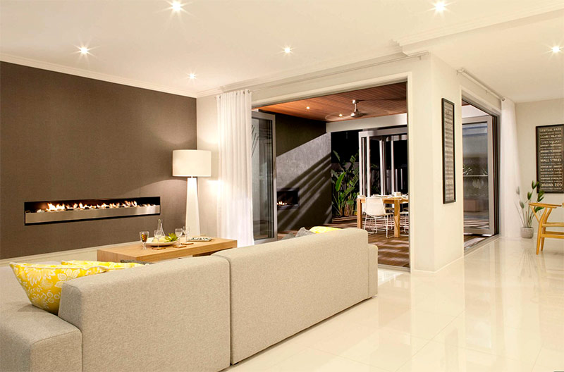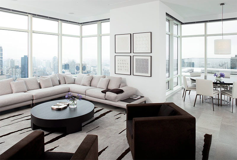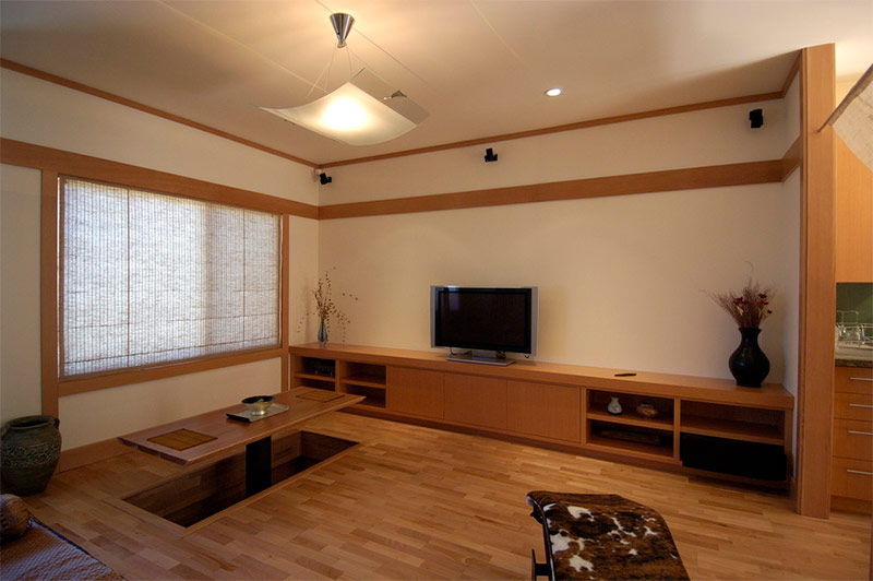 Minimalisme avec influence orientale. Faites attention à la table qui, lorsqu'elle n'est pas nécessaire, peut être «nivelée» avec le sol (de Mark architecture de marque).