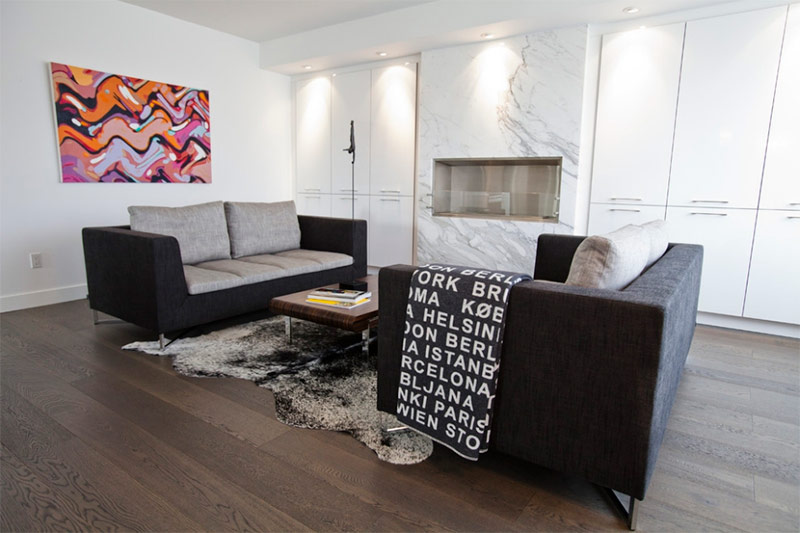 Incroyable salon minimaliste pour une résidence de style boutique hôtel (du Design Bigtime).