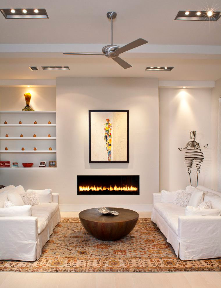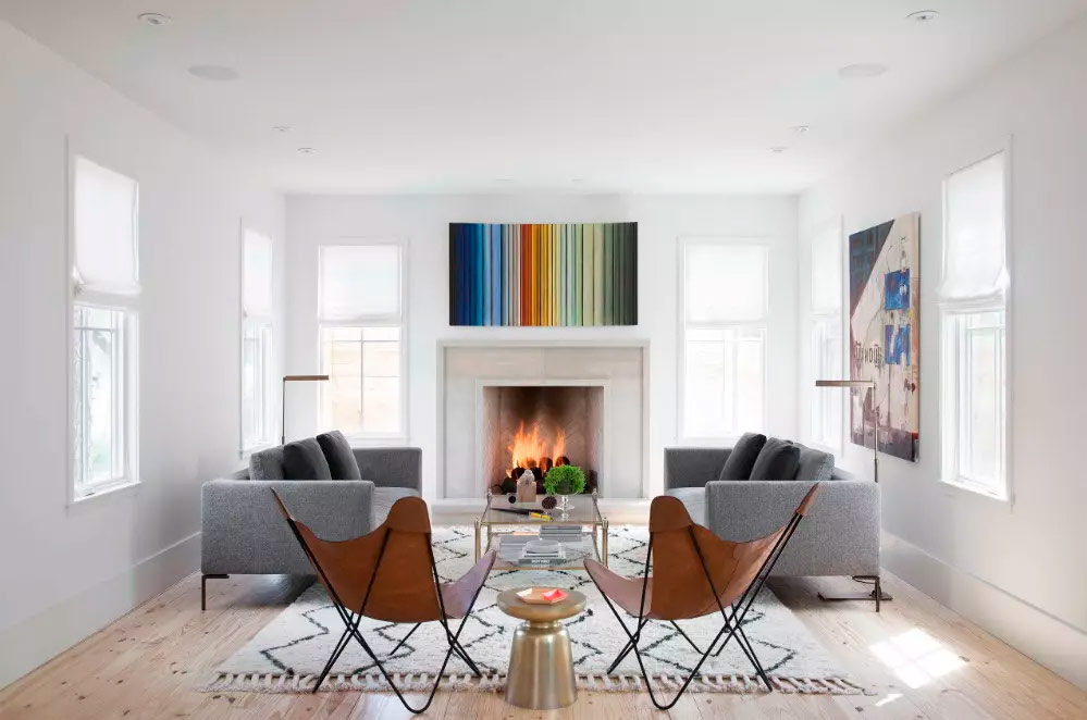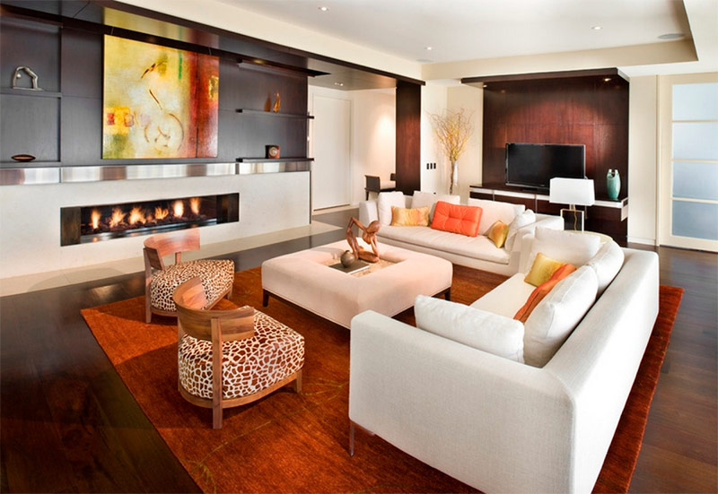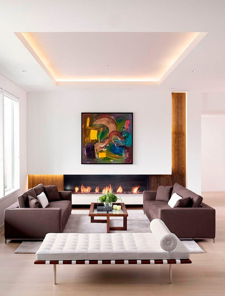 Les cheminées et les tables basses peuvent constituer des points focaux essentiels dans les salons minimalistes. La splendeur naturelle du feu attire immédiatement l’attention et il est difficile de rater le mobilier éclectique inhabituel. Les amoureux de la nature peuvent utiliser les plantes d'intérieur comme point central de l'espace, et les amateurs d'art trouveront évidemment le fond blanc et pur de l'intérieur comme une véritable trouvaille!