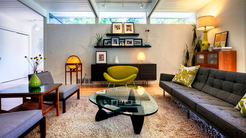 Rappelez-vous que le style minimaliste ne doit pas se limiter à de simples lignes droites et à des carrés. La courbe sensuelle est également appropriée ici, elle peut considérablement augmenter l'attractivité de l'intérieur. Les meubles dans le style du milieu du siècle dernier sont incroyablement confortables. Dans un espace minimaliste, il offre un contraste géométrique visuel tout en maintenant la conception propre et cohérente. Vous ne vous écartez pas du minimalisme tout en ajoutant du charisme à votre salon.