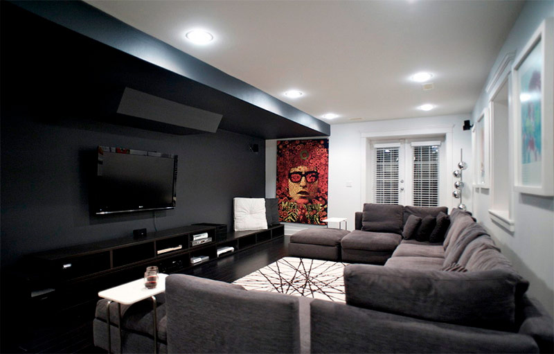 Salon dans le style du minimalisme dans une "tanière" moderne (de Chris Snook).