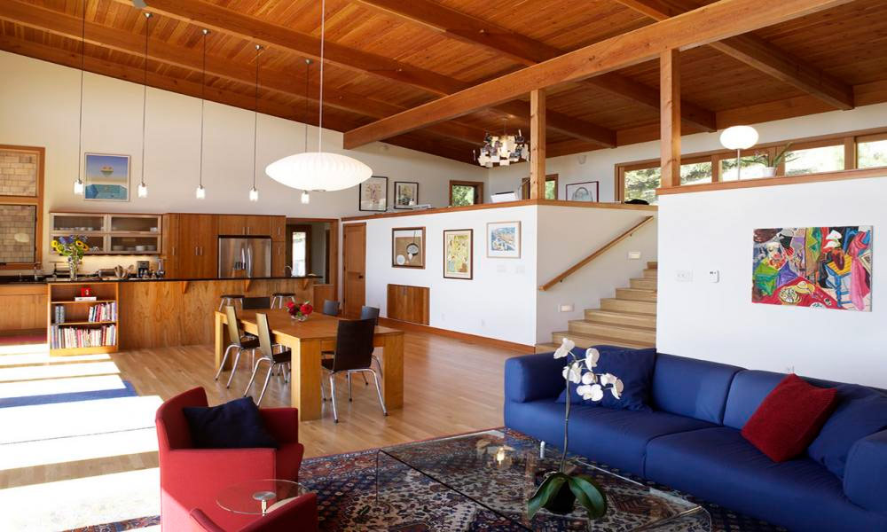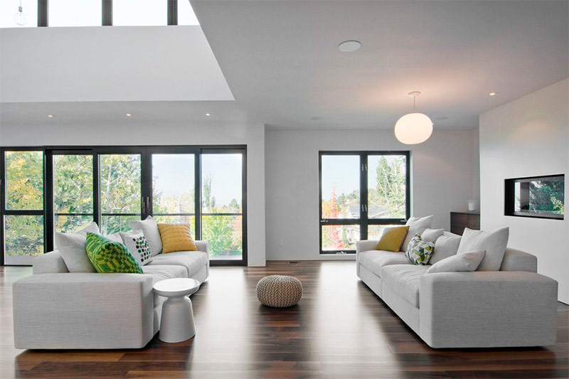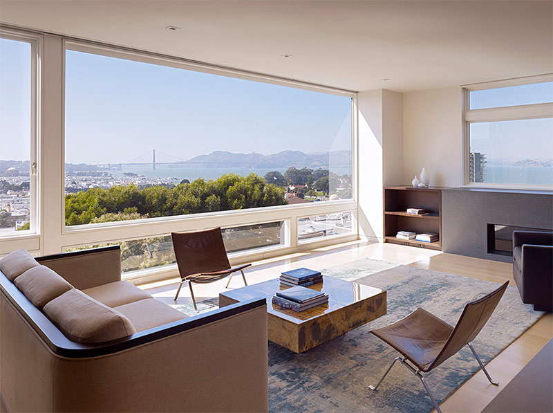 Le paysage à couper le souffle à l’extérieur devient une toile de fond pour un salon ouvert Architecture de Gary Gladwish).