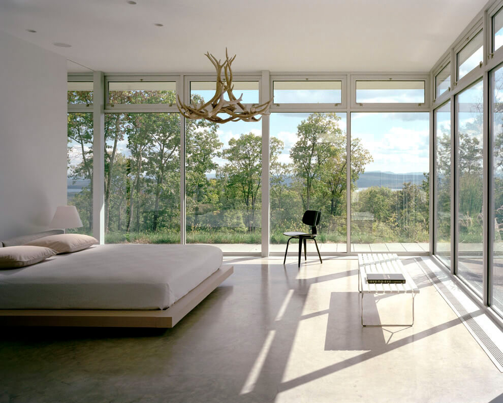 Une chambre confortable alliant style industriel et minimalisme (de Nouvelles de l'architecture mondiale).