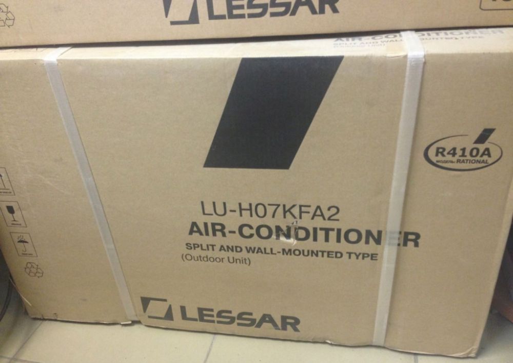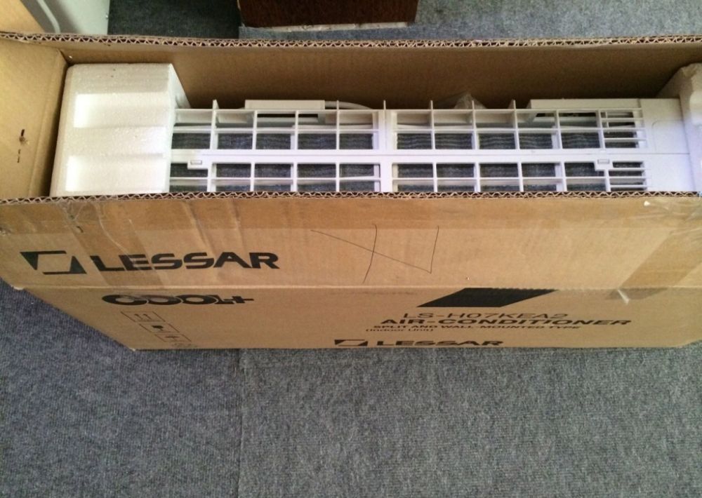 Système Split de Lessar LS-H07KEA2, installé l'été dernier dans le salon. Extérieurement, cela a l'air réussi, toutes les formes sont rationalisées, il y a un insert sombre sur le boîtier, où se trouve l'affichage du climatiseur. Les dimensions ne sont pas grandes, notre split s'intègre de manière compacte dans l'espace entre le mur et la porte du balcon. L’unité intérieure a des dimensions de 71X25X18,9 cm et l’extérieur de 68,5X43X26 cm.Le modèle est conçu pour des pièces de 10 à 20 m².