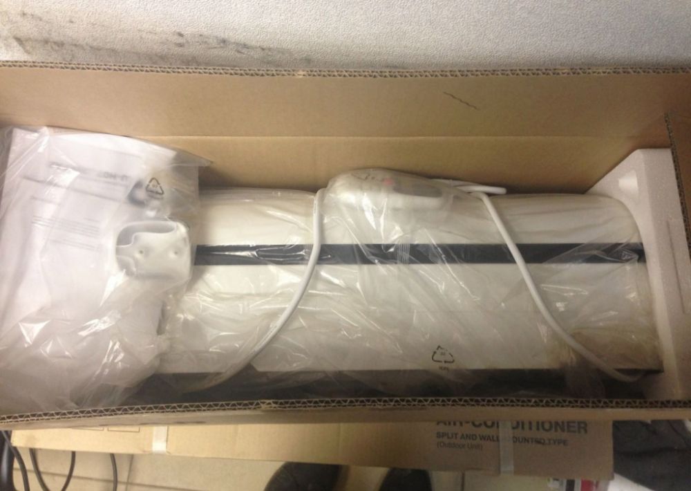 Complet avec la climatisation est une télécommande avec support. Taille miniature, mais la télécommande est confortable à tenir dans la main.