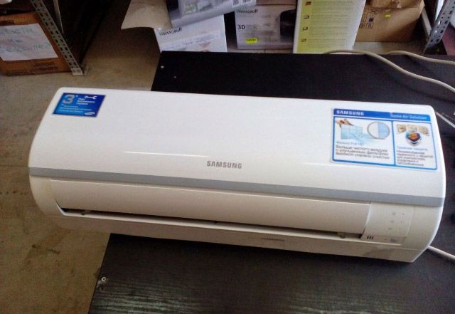 Excusez-moi, et je vais vous parler de ma scission. Fabricant Samsung, modèle SH12ZWH. Fabriqué en blanc, nettoyé et bien lavé. L'unité extérieure a des dimensions de 72X55X27 cm, pèse 33 kg, intérieure 80X29X19 cm, pèse 9 kg.