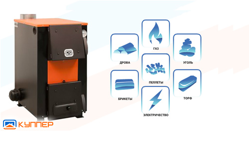 Appareils combinés. Ce sont des chaudières qui peuvent utiliser plusieurs types de combustible après une petite mise à niveau ou sans elle. Ce sont généralement des variantes utilisant des combustibles solides: bois de chauffage ou charbon et électricité ou gaz.