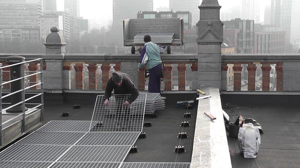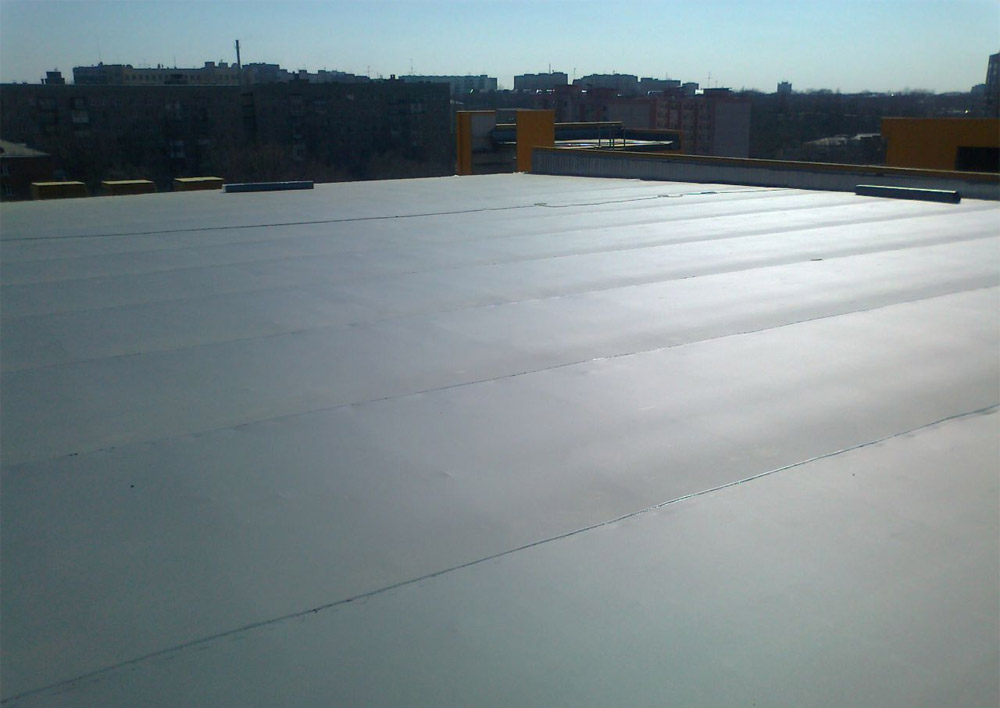 - Lors du montage d'un tel toit, il n'est pas nécessaire d'enlever l'ancien revêtement de sol (des fuites dans le béton peuvent d'ailleurs apparaître). En fusionnant l'ancien revêtement, nous renforçons au contraire la protection hydraulique.