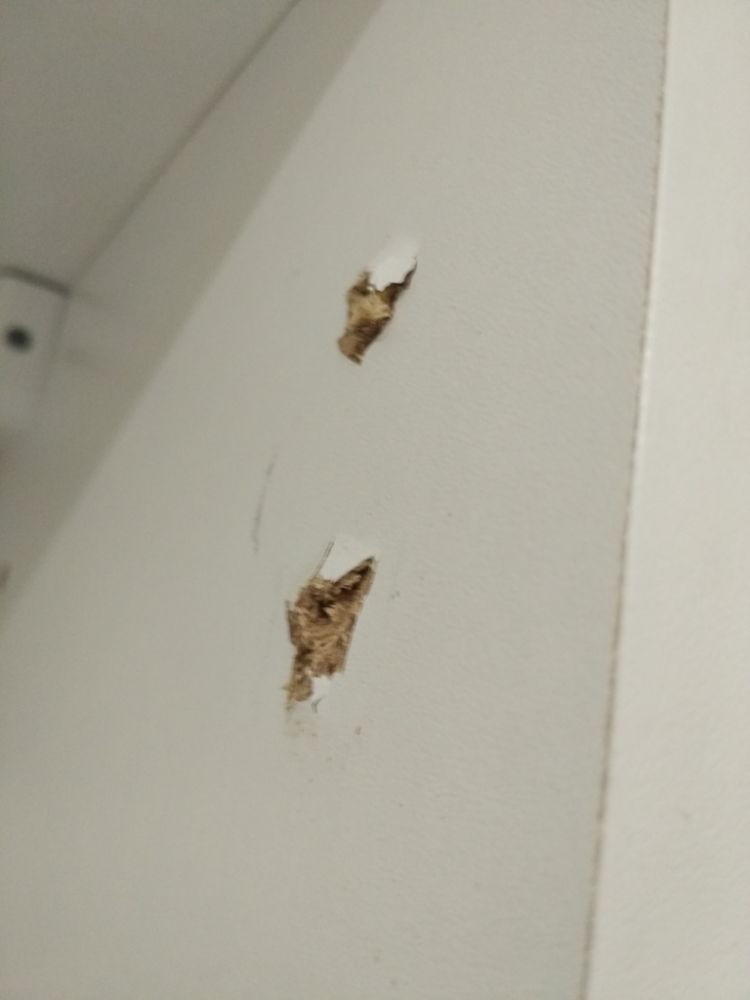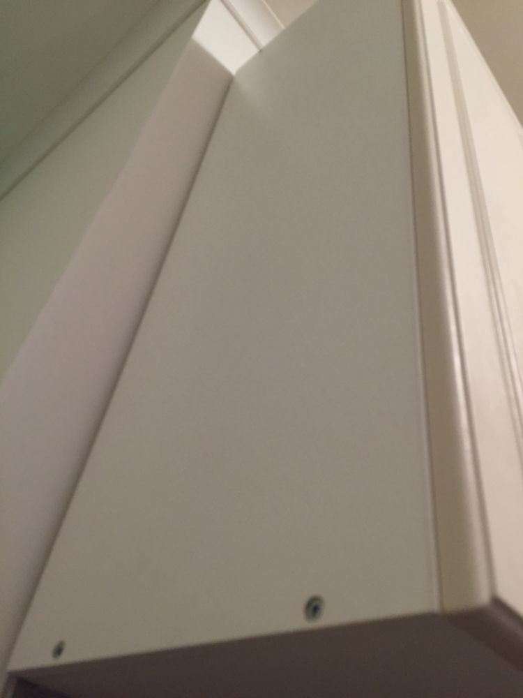 3. La porte est tombée sur une armoire murale. Apparemment, la porte, sous son propre poids, a lentement retiré la fixation du matériel supérieure et s’est inclinée fortement. Ignorant cela, je suis monté pour serrer les vis et à ce moment-là elle s'est effondrée. J'ai eu beaucoup de chance que cela se produise à ce moment-là et j'ai réussi à saisir la porte. Sinon, il pourrait s'effondrer soudainement et extrêmement douloureusement.