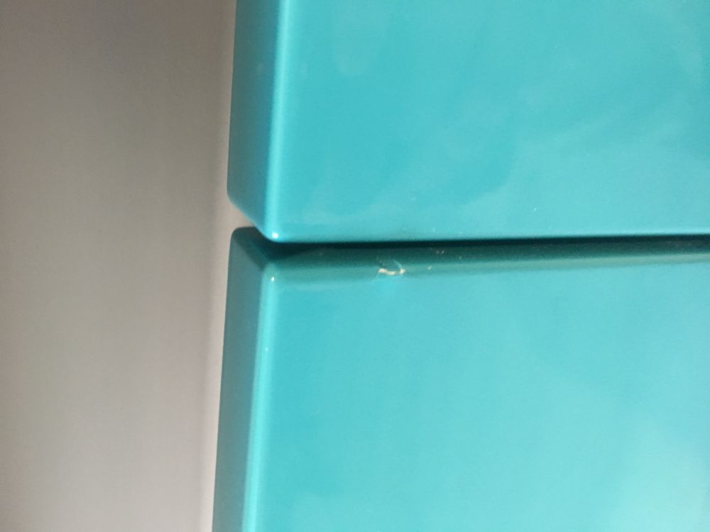 Où regardez-vous l’usine, pourquoi permettez-vous à des entrepreneurs aussi peu scrupuleux de se moquer des clients et encouragez-vous le non-respect de leurs obligations contractuelles?! De plus, n'ayant pas reçu de réponse à sa première demande, une seconde est née. Moins de 3 semaines d'utilisation, des éclats sur les façades ont été trouvés sur les armoires inférieures !!! Outrage et horreur! Et ils sont apparus du fait que la façade est située près de la poignée cachée en aluminium intégrée et la touche!