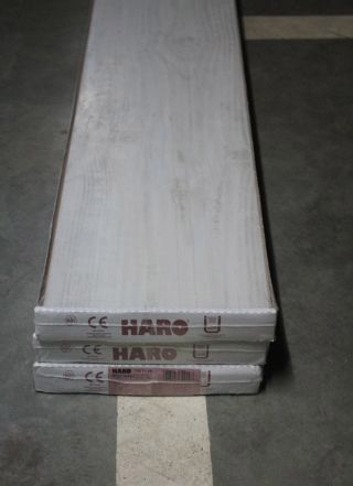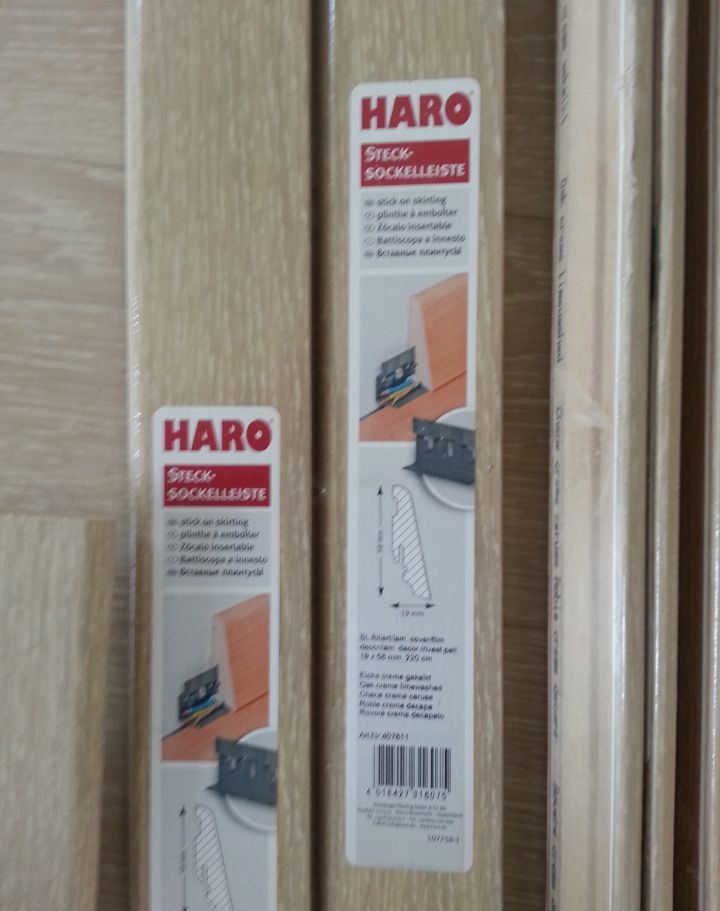 J'ai longtemps rêvé d'élever mon couloir. Le linoléum était déjà vieux là-bas et je me suis efforcé de trouver des matériaux naturels dans la maison. Pendant longtemps, je voulais un massif naturel, mais tout le monde n’avait pas d’argent pour cela (le montant nécessaire n’était pas petit) et les mains. Je me suis mis à acheter des revêtements de sols stratifiés. Récemment, un ami a été complètement convaincu - il a offert son aide pour la pose du revêtement de sol si je achetais un stratifié (il l’a déjà fait et l’a posé sans problèmes, et la pose d’une matrice est un peu plus difficile, elle peut être gâchée). Nous avons choisi la marque Haro Cream Whitened Oak dans le magasin (32e année). Il ressemble vraiment à du bois naturel - noble, beau.