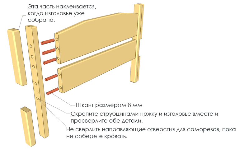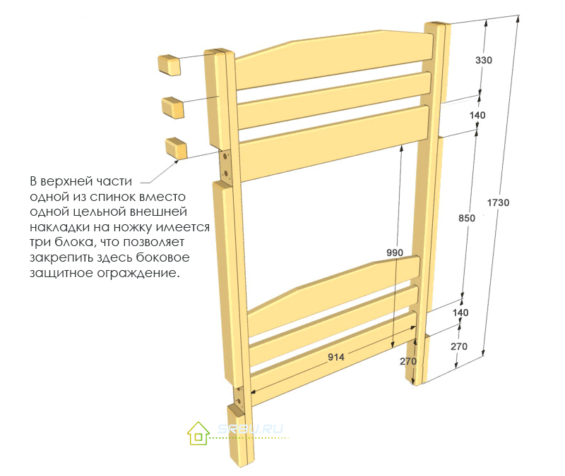 La tête et le pied du lit sont identiques, sauf que, sur le même dos, le dessin de la partie supérieure de la jambe est légèrement différent, ce qui vous permet de placer la rambarde de la clôture ici.
