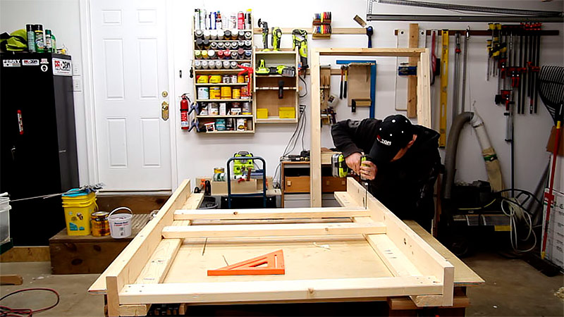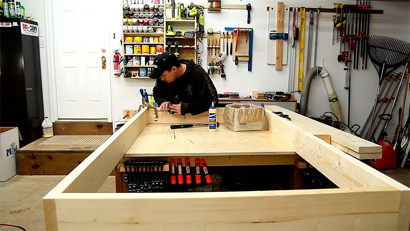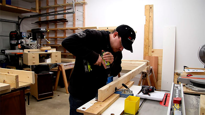 Les pièces du cadre sont assemblées à l'aide de colle à bois et de vis, en utilisant une connexion oblique à affleurement. Ils seront cachés par des matelas et personne ne les verra jamais. Un outil spécial est utilisé pour percer des trous fraisés en biais. Ensuite, une vis est vissée dans chaque trou.