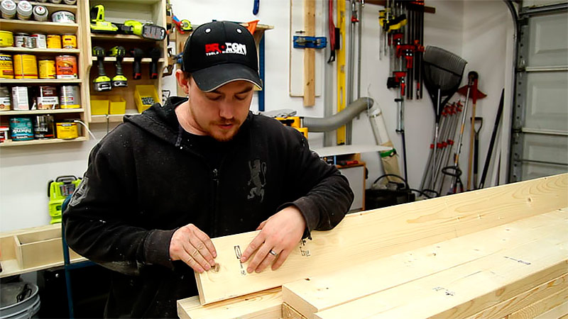 À l'étape suivante, j'ai fait des ébauches pour les escaliers. En nivelant les surfaces des planches formant les cadres des couchettes, j'ai en fait perdu 3 mm de la largeur de l'escalier. Les marches seront fixées à la partie la plus large des pieds afin de masquer les trous des vis qui fixent les deux planches formant le pied. J'ai utilisé une paire de cales d'espacement pour déterminer où les trous de guidage pourraient être percés.