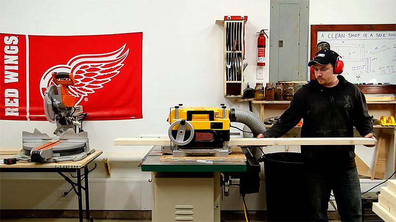 Quand les jambes furent prêtes, je réalisai que les planches de 5 x 15 cm que j'avais achetées à bon marché étaient loin d'être de la meilleure qualité. La plupart d'entre eux avaient de nombreuses entailles laissées par les rouleaux des mécanismes qui acheminent le bois vers la scierie. Pour les enlever, j'ai utilisé ma raboteuse (mais je réalise maintenant qu'il ne vous reste plus qu'à couper le côté défectueux de la machine à découper).