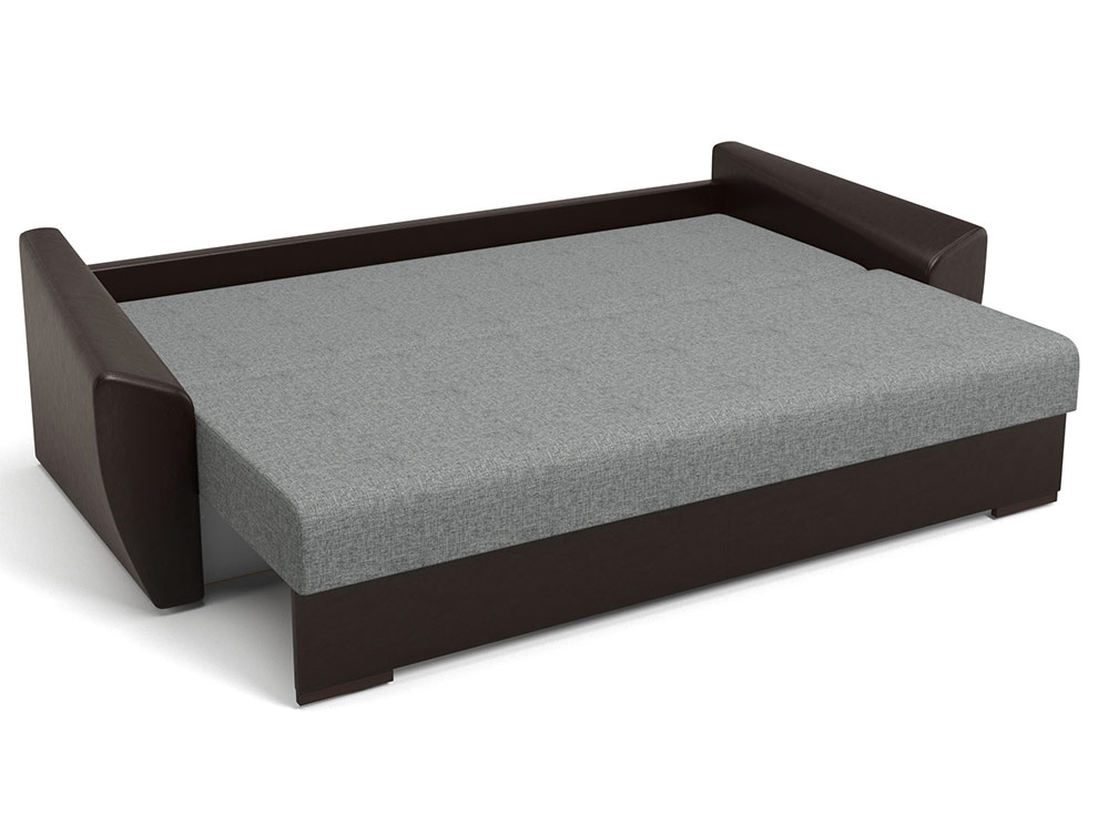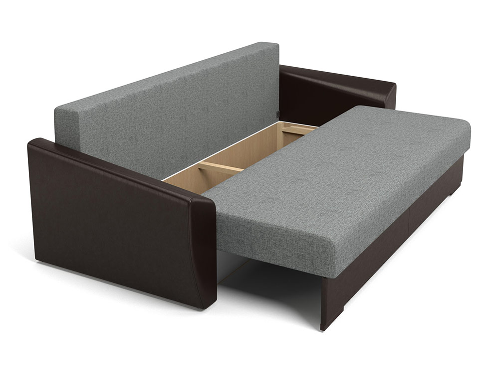 Les avantages de ce modèle sont la facilité de pliage. Le canapé se transforme en un lit en deux mouvements: 1. vous devez tirer le siège sur vous-même; 2. sur le siège vacant, abaissez le dossier. La surface est plate, sans virages ni pentes. Si le canapé est équipé de lattes flexibles, elles fourniront un bon soutien au corps pendant le repos.