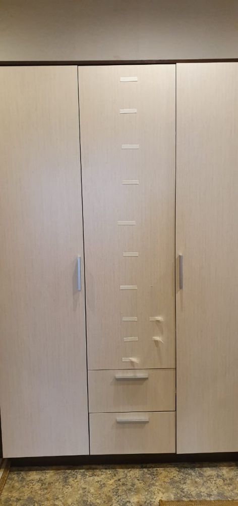 En conséquence, après un mois et demi, 6 positions sur 7 sont venues (toutes sans couloir), dont 4 ont dû être rendues, car les pièces présentaient des rayures larges et profondes, des taches de colle et des copeaux. Il y avait un canapé et un bureau.