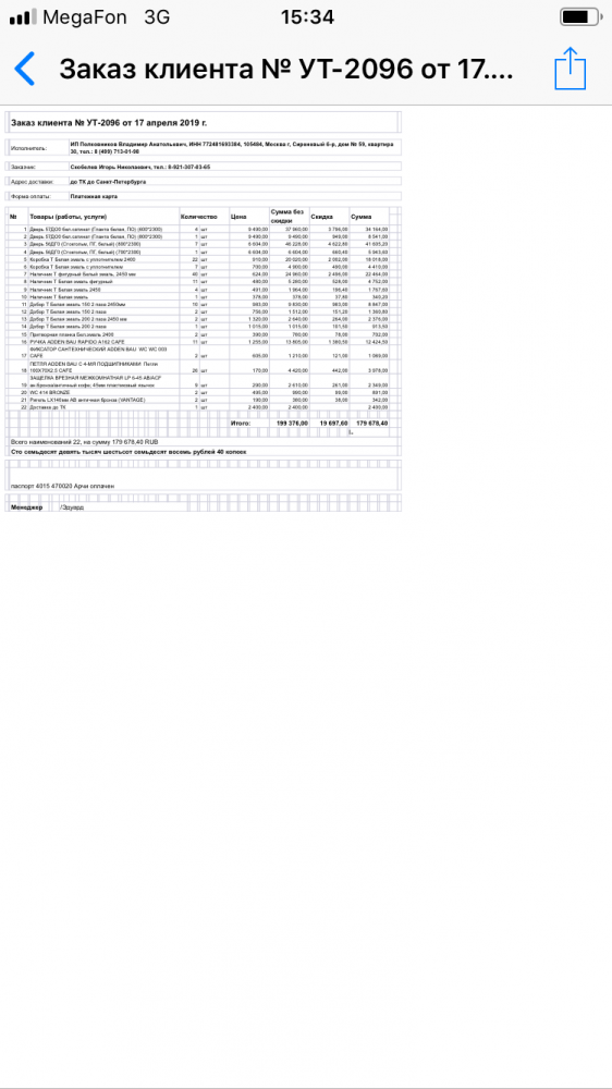 Nous avons été approchés par un client intéressé par le modèle de Stockholm, émail blanc, nous avons accepté une commande de 9 portes début novembre, c’est l’un de nos clients habituels, car nous travaillons uniquement avec des FABRICANTS DE QUALITÉ, ce qui n’est pas le cas de cette entreprise! Donc, début novembre, nous concluons un accord avec un client, nous sommes exprimés par l'usine qui fabrique 1 mois + le total du transport le 16 janvier, nous vous l'apporterons, OK! Nous attendons!