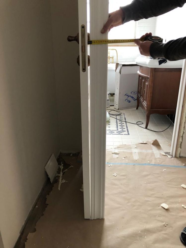Après une attente de 2 mois supplémentaires, le 3 juillet, une toile nous est présentée (imaginez le client, le 2 novembre 2018, vous avez commandé les portes et l’ensemble du récit dure 8 mois, jusqu'au 3 juillet.) Production, commande à nouveau. Mais ce n’est pas la fin, nous mesurons la toile, et elle mesure 79,5 mm, c’est-à-dire que lors du remplacement du vantail de la porte, il y aura un intervalle (pas beau), en particulier avec l’émail blanc.