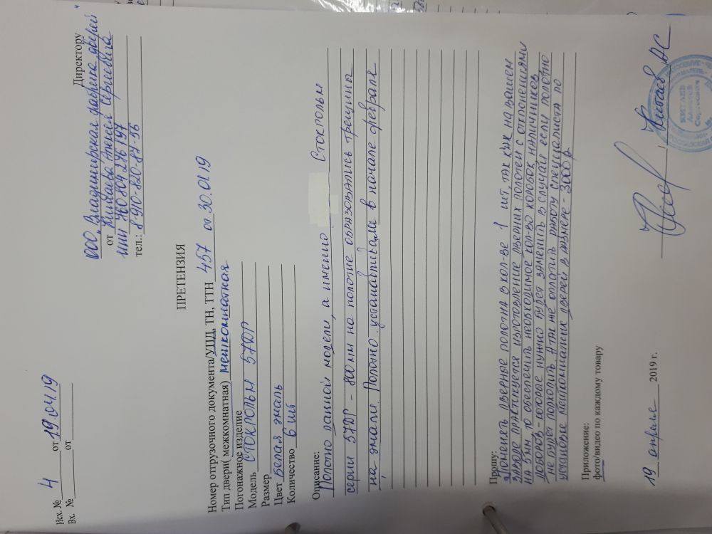 Nous avons joint une photo de la porte avec les déviations sur lesquelles nous avons écrit ci-dessus, une photo de la dernière feuille du contrat avec le sceau également joint, et une photo de la réclamation que nous avons écrite à l'usine également jointe. C'est une situation réelle!