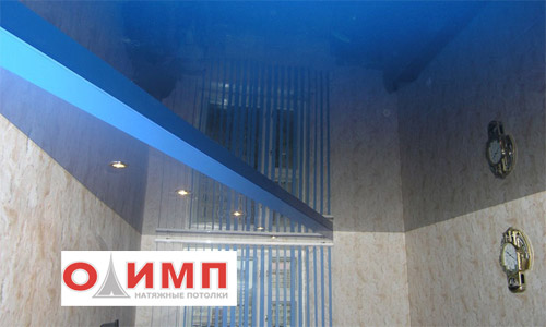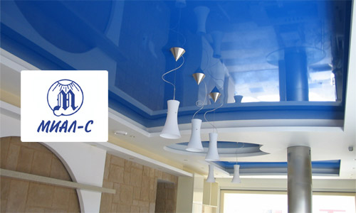 Plafond tendu brillant. Représente un tissu de PVC étiré brillant ayant une réflectivité. Les plafonds brillants peuvent être de différentes couleurs et utilisés à la fois pour des visites non résidentielles et dans l'appartement, dans des pièces telles que la cuisine, le salon ou la chambre à coucher. Augmentez visuellement l'espace.
