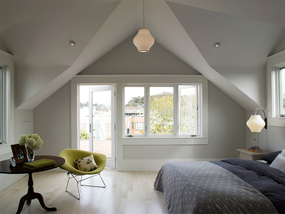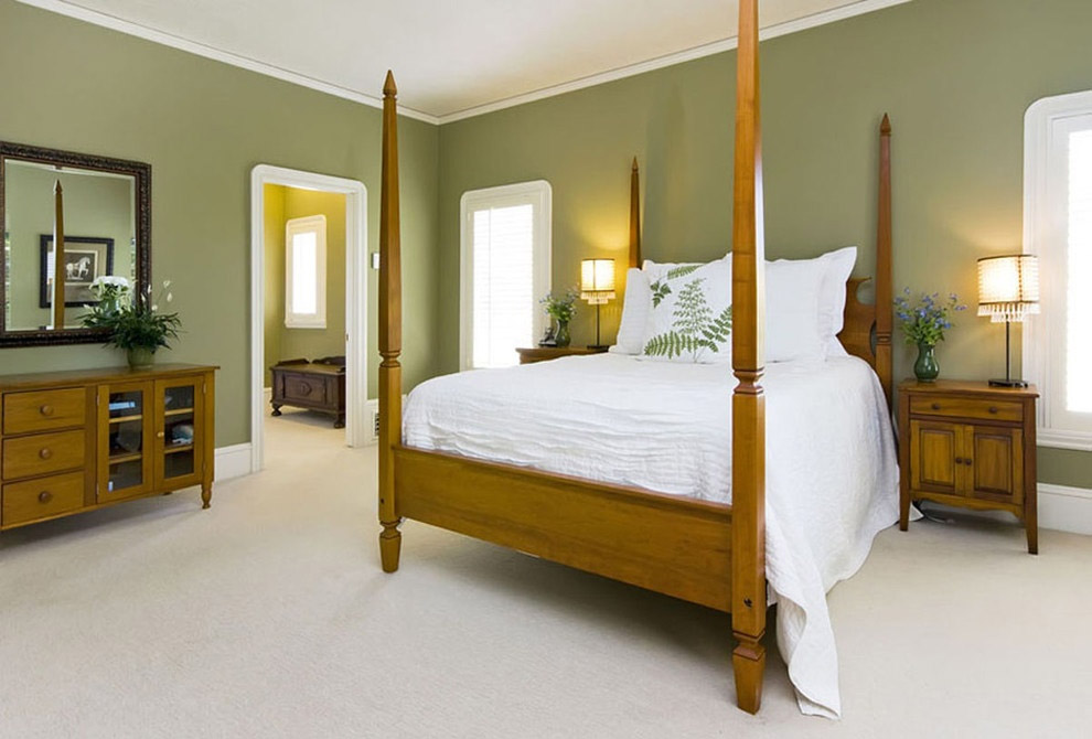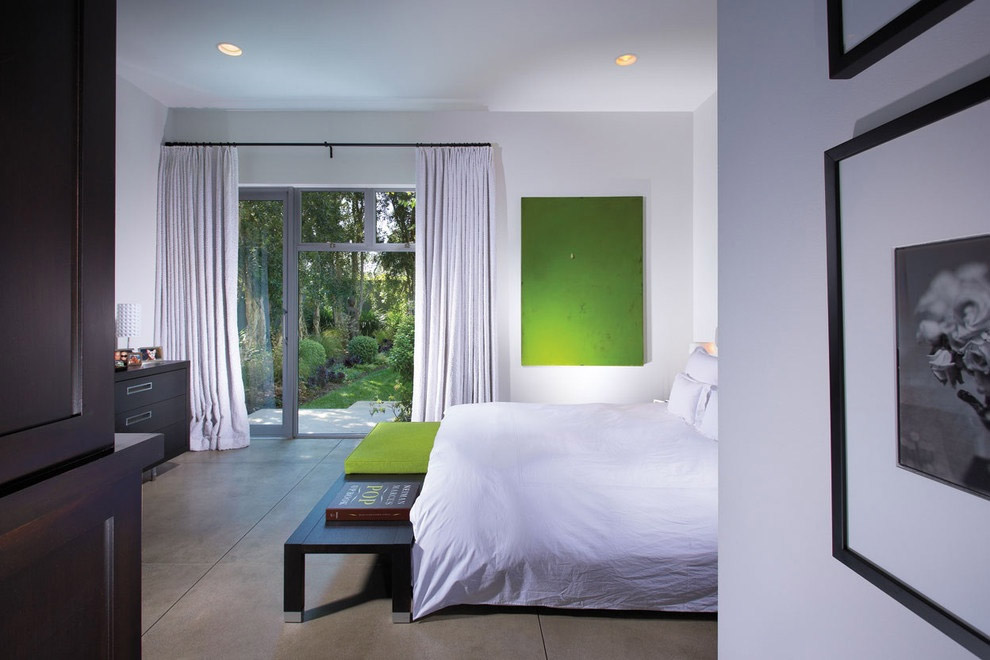 Delicaat gebruik van een lichtgroene tint in de slaapkamer.
