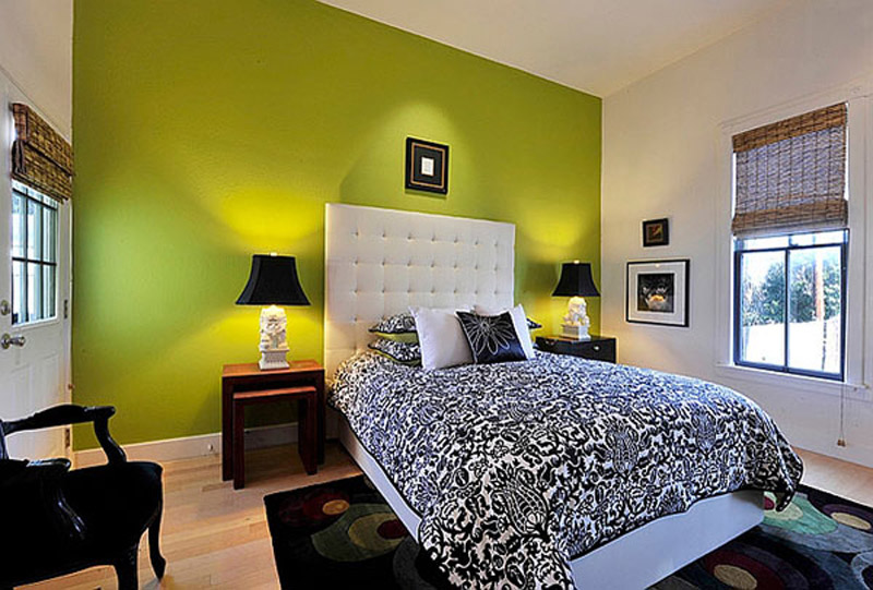 Het is mogelijk om groene accenten in de kamer te brengen zonder het te repareren met decor en meubels.
