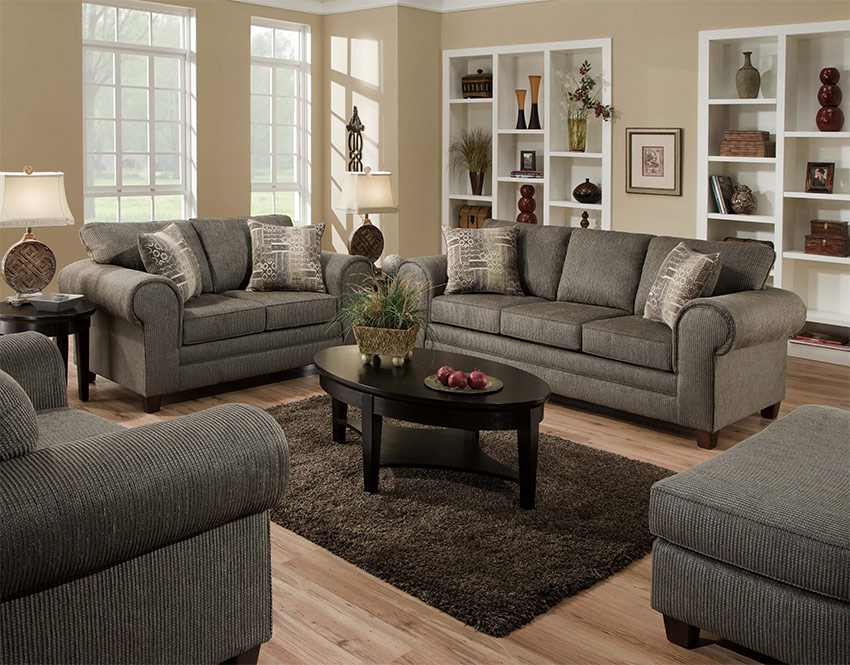 Ten derde zijn meubels uit dezelfde collectie in dezelfde ruimte of woonkamer harmonieus gerangschikt in textuur, design en kleur.