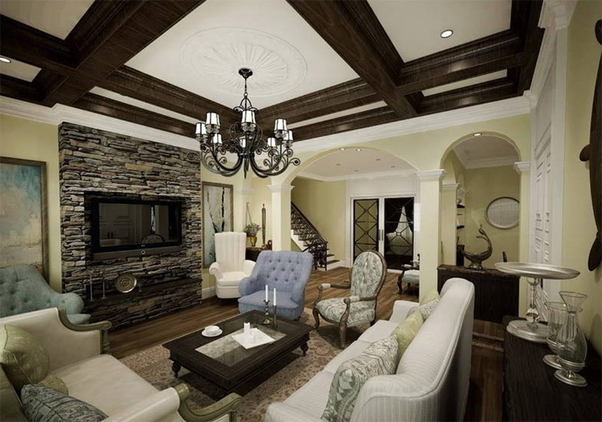 Typische technieken voor het decoreren van plafonds in een klassieke of moderne Amerikaanse stijl zijn: