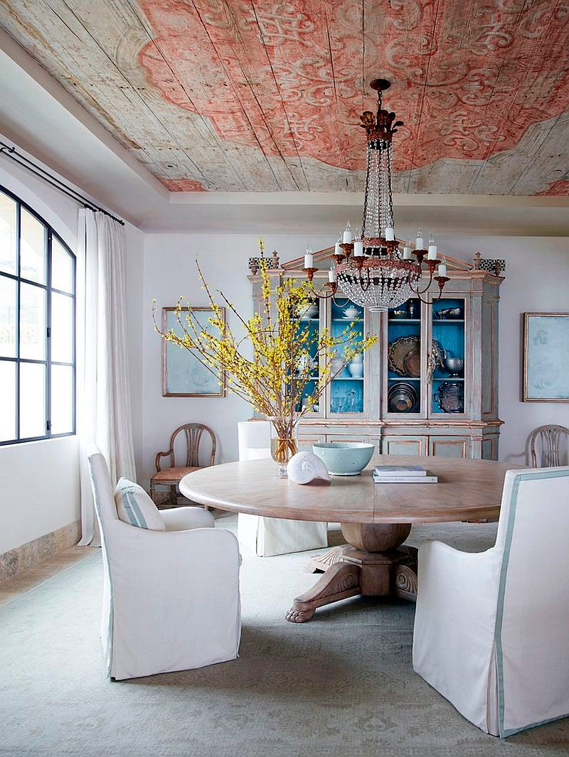 Taket kan være et bakteppe for en antikk setting. Hvis rommet er fylt med gjenstander som i stor grad tiltrekker oppmerksomhet, blir taket glatt, jevnt, og dekker det med vanlig maling eller hvitvask. Hvis rommet har mye ledig plass, ser møblene enkle ut, da er taket dekorert i antikk stil. Spor av tid kan vises på den: fastpuss, falmet maling, skrellende hvitvask.