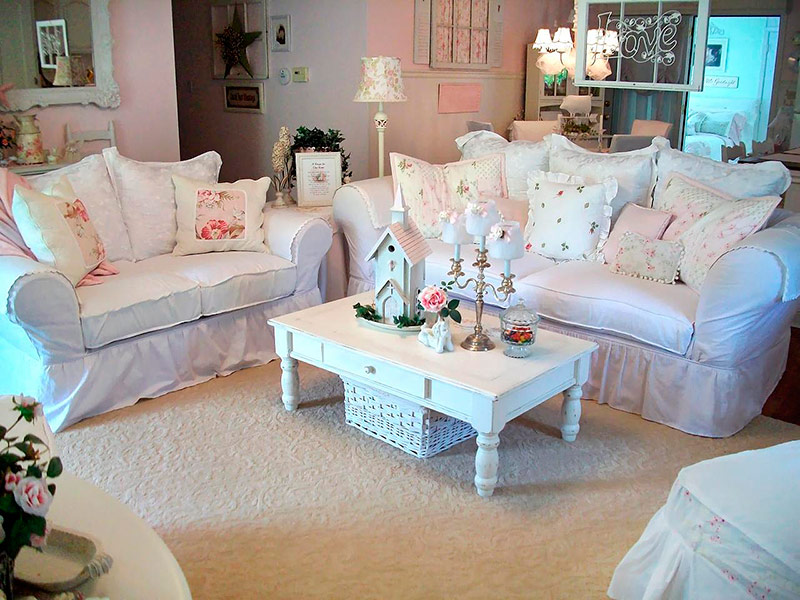 - Riktig utvalg av møbler i stil med shabby chic