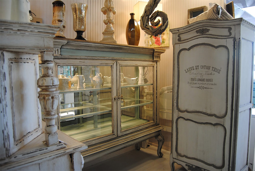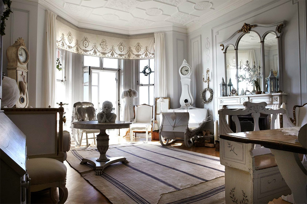 Møbler er hovedfokuset for dette interiøret. Hun setter tonen for ham og er gjenstand for stolthet fra eierne. På den kan du skille loslitt chic fra land eller provence. Rachel Asheville kom med følgende anbefalinger i artiklene sine om riktig valg av møbler: “Ikke kjøp et bord eller et skap med industriell serieproduksjon. Se hvor utsøkt og dyrt de håndlagde møblene til en barokkmester ser ut. Hvordan hver bøyning og monogram på den blir verifisert, hvordan andelen av former blir observert. Til tross for at det ble laget for flere tiår siden, mistet ikke håndlagde møbler fra naturlig tre sin skjønnhet og raffinement. Hun er fremdeles luksuriøs, om enn litt slått. ”