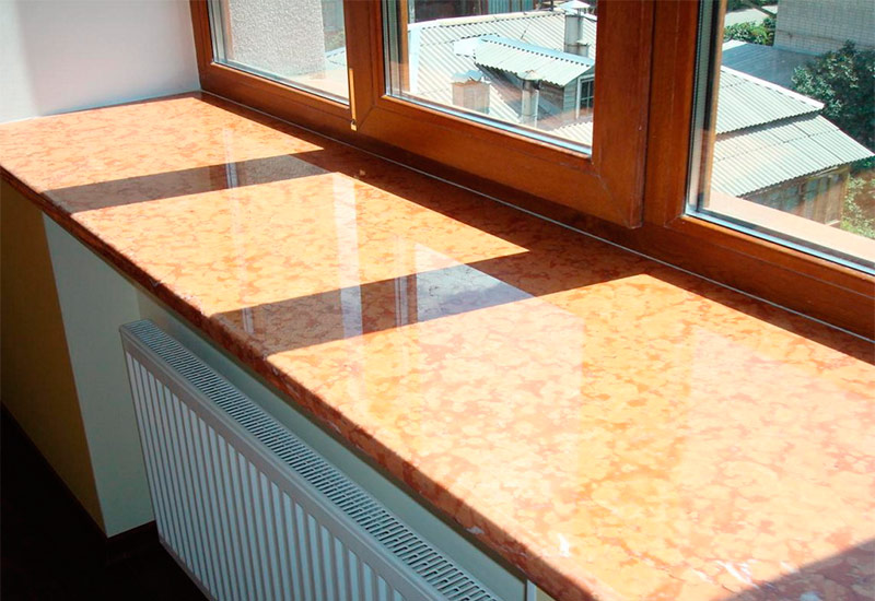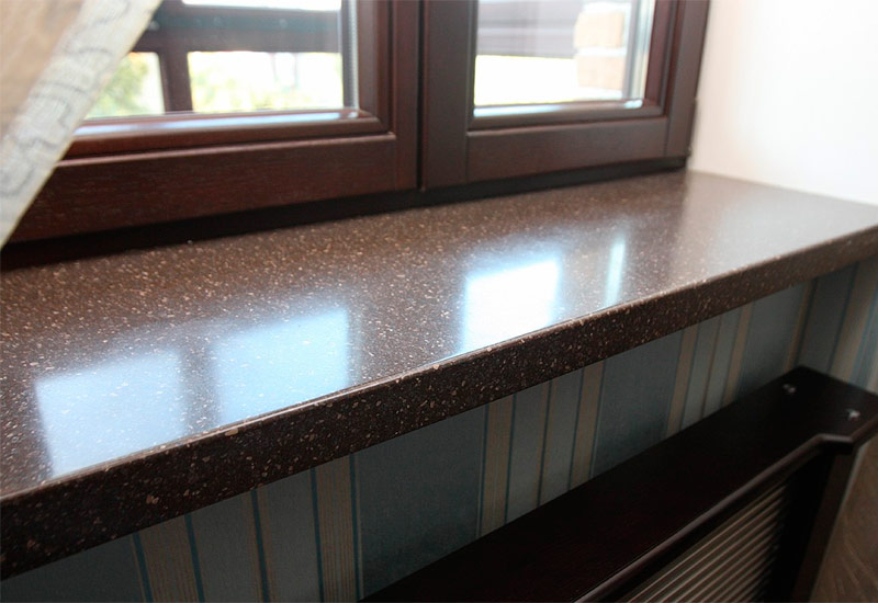 Il est composé de charges minérales et de résines polymères liantes. Différents colorants sont utilisés pour donner une couleur. Grâce à cette technologie, on obtient un monolithe dont les caractéristiques et l’aspect ne sont pas inférieurs à ceux de la pierre naturelle. La haute viscosité du matériau vous permet d’éliminer complètement les risques de fissures et d’éclats. En outre, l'installation d'un appui de fenêtre en pierre artificielle est beaucoup plus simple. Travailler avec elle ne prend pas beaucoup de temps et son poids est bien moindre.