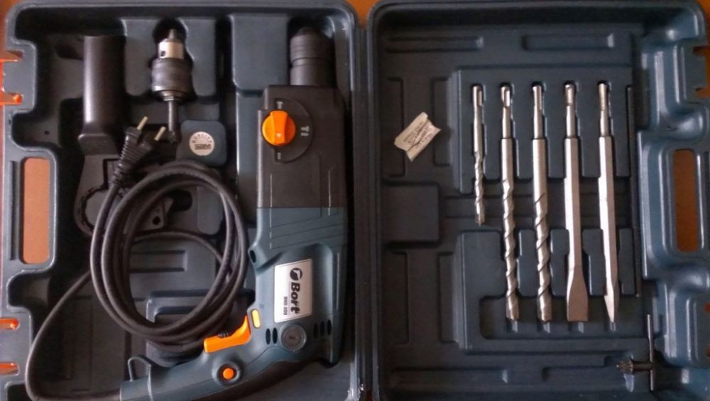 Face à un problème, il ne fallait pas un marteau perforateur coûteux et il travaillait aussi bien. Dans le magasin, j’ai acheté un marteau perforateur Bort BHD-700, je lui ai donné environ 2 700 roubles. Je l'ai vérifiée lors de la pose des stroboscopes dans un mur de briques sous le câblage. Après 20 minutes de fonctionnement, le poinçon ne chauffait plus beaucoup, la puissance du coup de sortie est plutôt bonne (2,8-3 joules seront précis). Une fois pendant le travail, j’ai eu une petite «morsure» de la perceuse, il y avait une très bonne fonction de coup de retour, maintenant je n’ai plus à débrancher la foreuse coincée et à la desserrer manuellement du mur. J'ai tourné un peu en arrière et l'exercice est "gratuit", vous pouvez travailler. Je l'utilise depuis de nombreuses années. Le seul problème était le bouton de démarrage, mais il s'est avéré qu'il devait être nettoyé. En général, je le suis et le maintiens régulièrement, je ne sais pas comment cela s’est passé. Je suis très satisfait de l'achat, un tel coup de pouce aidera toujours!