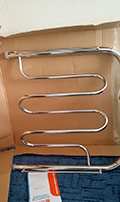 Porte-serviettes chauffant à l'eau du fabricant ENERGY, modèle PRESTIGE MODUS, acquis via le magasin en ligne. Il a été vendu à ce moment sur le stock (avec un rabais), donc il ne coûte que 7700. Une garantie de 60 mois. Le sèche-linge est en acier inoxydable, il est recouvert de chrome sur le dessus, avec une réflexion de miroir, il est élégant et se mélange parfaitement au reste des mitigeurs de ma baignoire. La forme ressemble à une échelle, au sommet il y a une petite étagère. En fait, cette chose est très pratique dans la vie quotidienne, les petites choses sèchent rapidement sur le porte-serviettes chauffant, et sur l'étagère du haut, il y a généralement une boîte de chapeaux ou de chaussettes pour le séchage. On peut également noter que le sèche-linge chauffe assez bien la salle de bain. Depuis son installation, j'ai complètement oublié ce qu'est un bain froid. Maintenant, nous avons toujours chaud. Dans la vie de tous les jours, un porte-serviettes chauffant est tout simplement nécessaire, je ne sais pas comment ils s'en passaient.