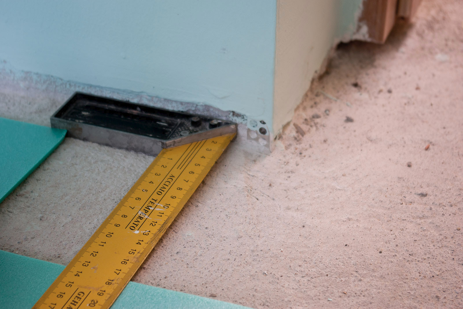 Mesure de distance avec un carré de menuisier.