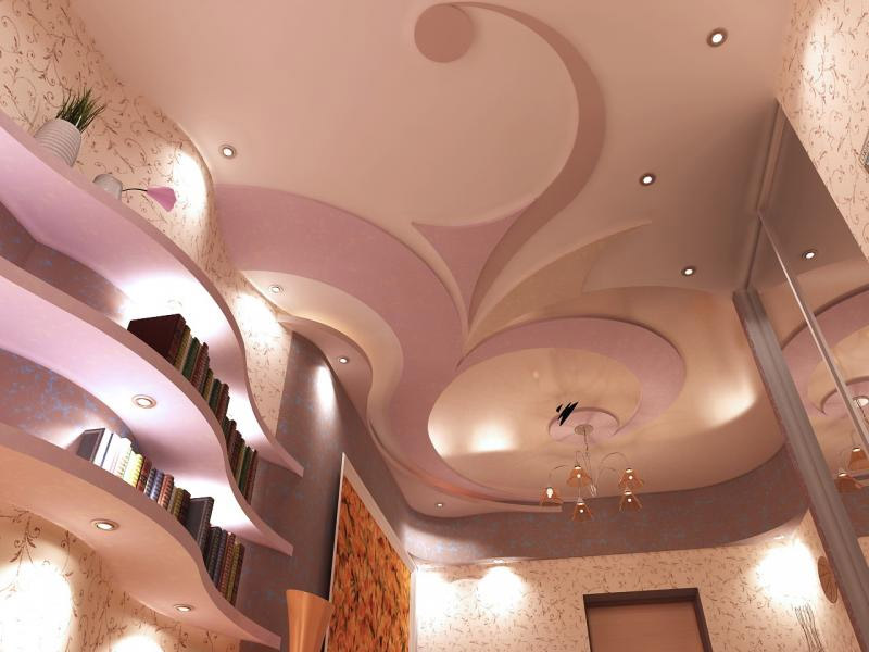 La version la plus commune d'un tel plafond est une conception en spirale irrégulière. D'autres options sont possibles, ainsi qu'une combinaison complexe de plusieurs éléments placés tout au long du plan. L'éclairage donne au plafond un charme et un mystère. Et si, en peignant une surface, prenez plusieurs teintes, vous obtiendrez un plafond tout à fait unique. Cela aura l'air tout simplement magnifique.