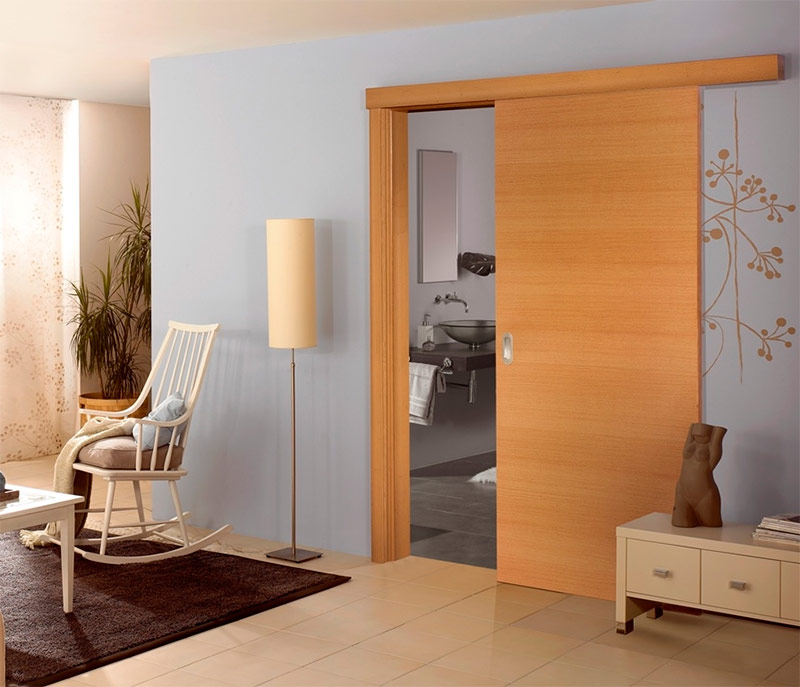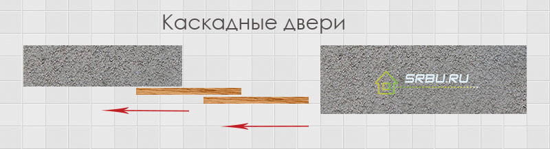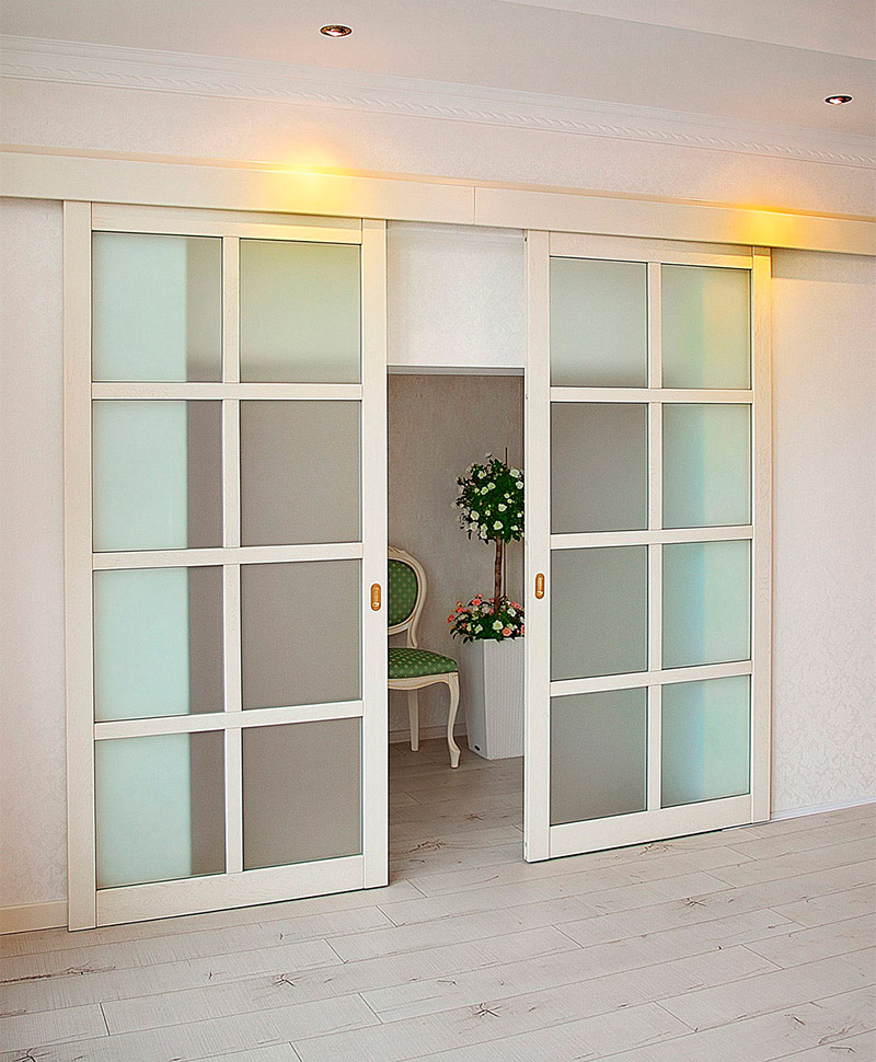 Eles também podem ter uma ou duas asas e trabalhar com o mesmo princípio que as portas dos compartimentos. A principal característica desses modelos é a presença de nichos especiais na parede, nos quais as folhas das portas ficam ocultas ao serem abertas. O nicho pode ser construído em drywall ou outros materiais de construção, ou você pode comprar uma versão acabada com uma porta deslizante.