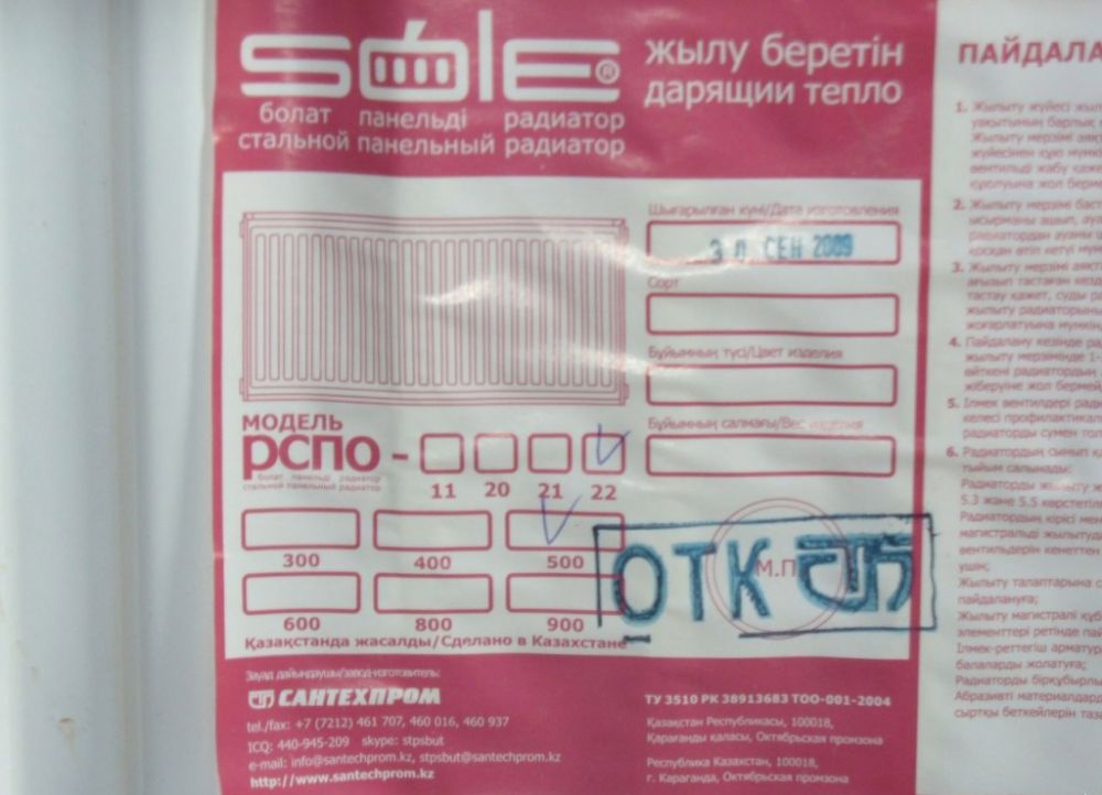 Les radiateurs de marque Sole sont fabriqués au Kazakhstan. Ce sont des radiateurs à panneaux en acier très largement utilisés dans les systèmes de chauffage autonomes. Le fabricant propose des radiateurs à panneau des types suivants: 10, 11, 21, 22, 23. En raison du transfert de chaleur important, le chauffage de l'air se produit instantanément et la présence d'un régulateur de température permet d'établir une température confortable. Une conception soigneusement étudiée élimine les angles vifs et garantit la sécurité du radiateur. La légèreté et les diverses options de connexion simplifient grandement le processus d'installation. Pour en savoir plus sur les avantages et les inconvénients de ces radiateurs, vous pouvez consulter les avis laissés par les visiteurs à propos des radiateurs Sole.