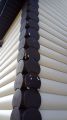 Monté avec plaisir. Normalement, couper avec des ciseaux pour le métal. Je teste le matériel depuis un an. Les résultats sont contradictoires. C’est bien qu’il soit lavé sans problèmes, ne soit pas couvert de rayures, ne se décolore pas (un ami a acheté la même chose, les couleurs correspondent). Il est dommage qu’au printemps des fissures soient apparues dans les coins, que la peinture se soit décollée et que le plastique soit sorti; au cours de l'été, la finition (holzplastique, brun riche) du côté ensoleillé est devenue légèrement ondulée.