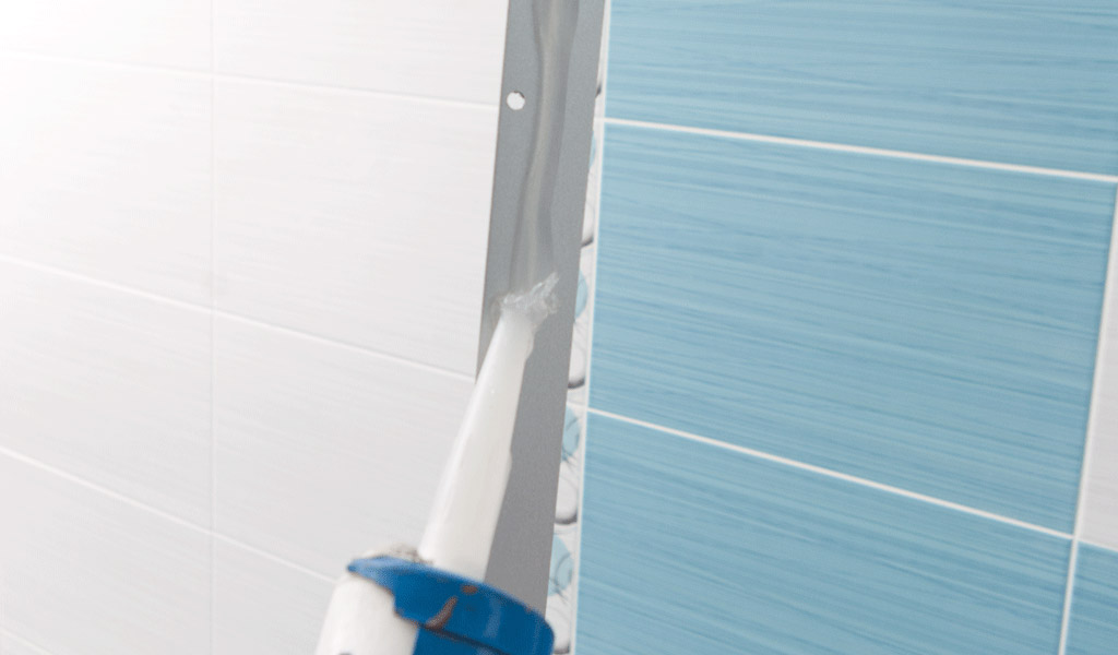 Après avoir ajusté la hauteur du bac et le fixer au mur, scellez les espaces entre la base de la douche et le mur avec du mastic à la silicone.