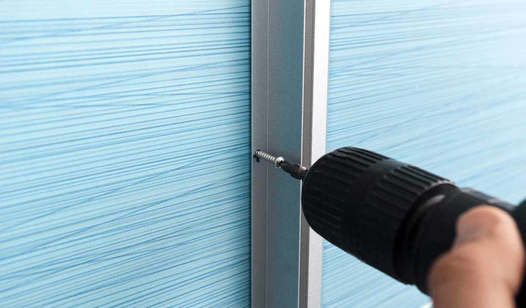 En suivant les instructions du fabricant, fixez les panneaux latéraux. Utilisez un tournevis pour installer les attaches fournies. Vérifiez que les panneaux correspondent au reste des éléments structurels.
