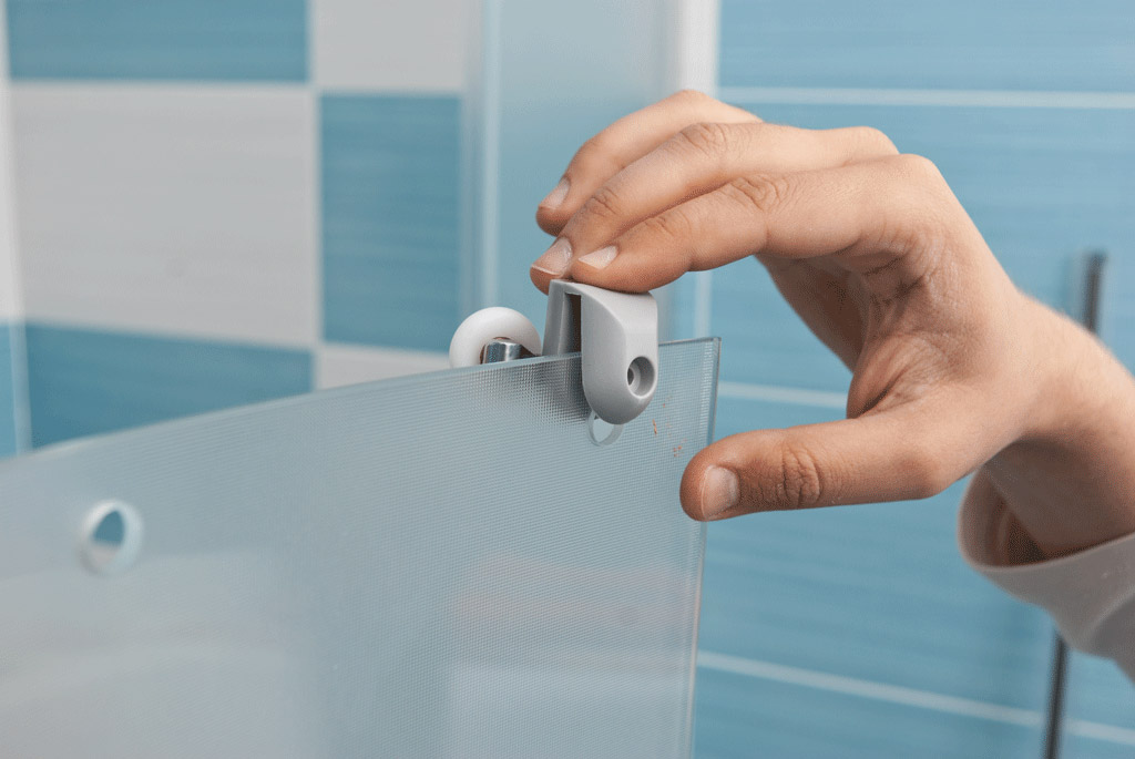 Installez les roulettes sur la porte de la douche conformément aux instructions du fabricant et fixez-les avec des vis. Il en va de même pour les joints de porte et les autres articles fournis.