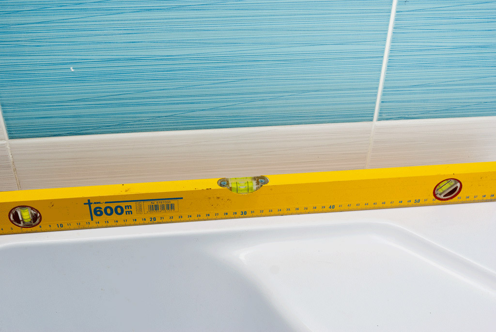 Alignez le receveur de douche sur tous les bords en utilisant le niveau à bulle pour le contrôler. Si nécessaire, ajustez la hauteur des jambes avec la clé appropriée.