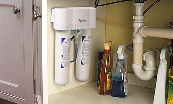 Ce serait une erreur de supposer que ces dispositifs suggèrent un moyen spécifique de purifier l'eau. La phrase «sous l'évier» signifie seulement qu'ils sont installés là-bas - sous l'évier de la cuisine. Les tuyaux adaptés au filtre sont raccordés en tapotant avec des tuyaux d'eau pour l'alimentation en eau froide. Et à l'étage un robinet séparé est affiché, à partir duquel il sera possible de collecter de l'eau purifiée.