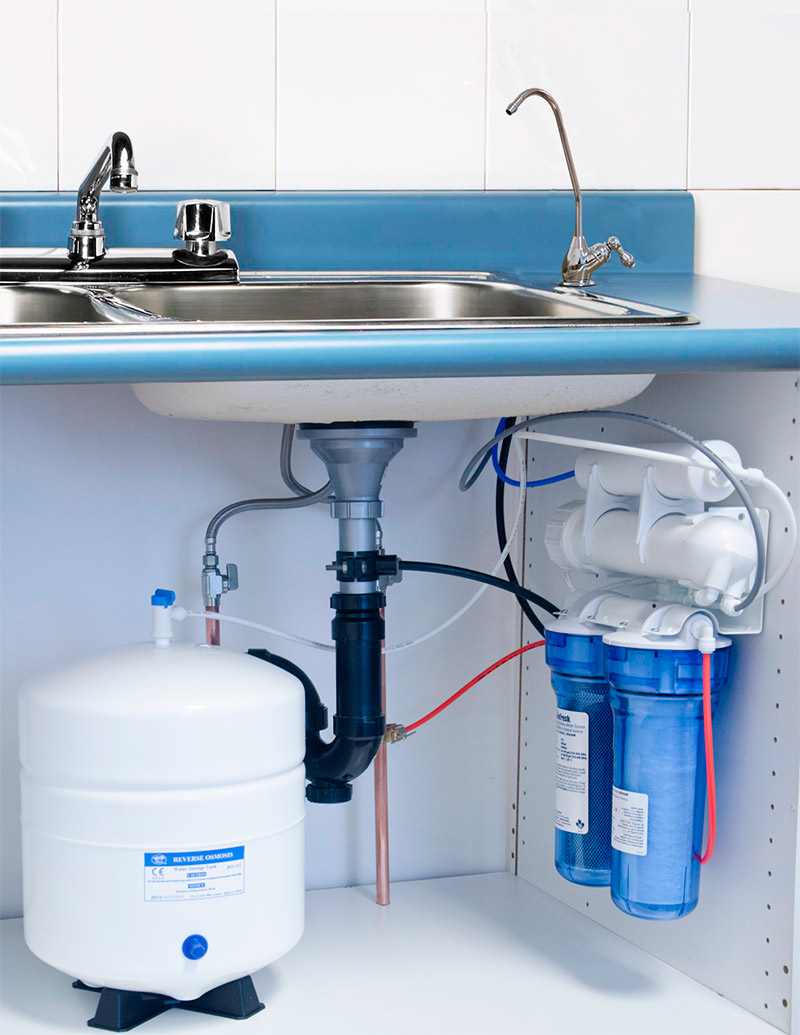 Quant aux caractéristiques de conception des filtres avec placement sous l'évier, elles peuvent être réalisées en deux versions: les systèmes à osmose inverse et les filtres à sorption à écoulement continu.