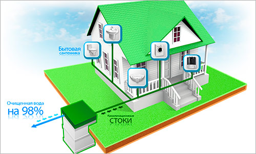 3 section. Traitement final des eaux résiduaires des contaminants restants. Le niveau minimum de nettoyage fourni par les fosses septiques modernes est de 65%, le maximum de 98%.