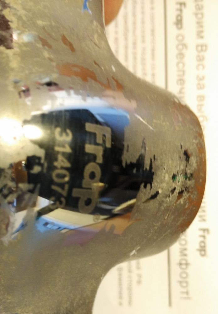 Le premier robinet Frap pour la salle de bain que j'ai acheté fin 2014, juste au moment où le dollar sautait, j'ai réussi à acheter à l'ancien prix un peu moins de 1 000 rands. En août 2016, le corps du mélangeur a éclaté à la couture, inondant presque tout l'appartement. J'ai couru au magasin de toute urgence pour acheter un autre robinet, et voici l'embuscade - la marque de celle qui a éclaté, naturellement je ne m'en souvenais pas, mais je n'ai pas eu le temps de regarder (la marque de ce fabricant a été très soigneusement appliquée sur le côté du mélangeur qui fait face au mur !!!)) )). Dans le magasin, le vendeur, à ma demande, a acheté un robinet de meilleure qualité, mais pas très cher, a immédiatement commencé à louer la marque Frap !!! J'ai également pensé - quelque chose de familier ... lorsqu'on lui a demandé ce que Frap est bon - le vendeur a déclaré que ce fabricant ne fabrique que de véritables boîtiers en bronze fiables - pas cette Chine pas chère en silumin, qui moi, et donc éclater. Persuadé le bâtard. Le prix de la table de mixage était déjà 2600 roubles. Quelle a été ma surprise et ma colère quand à la maison, en dévissant le robinet qui a éclaté, j’ai vu la même marque - Frap !!!! Voir la photo du mélangeur en rafale ici: https://drive.google.com/open?id=0B4UcGDC3tgoxVFBwZlR1OWpFU00