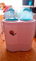 Pour une résidence d'été, ils recherchaient une option peu coûteuse. Ils ont donc acheté une machine à laver de la marque Assol. Le modèle que nous avons est le HRV30-148, il s’agit d’un dispositif semi-automatique, ce qui implique que le rinçage et la filature du linge doivent être effectués de manière indépendante.