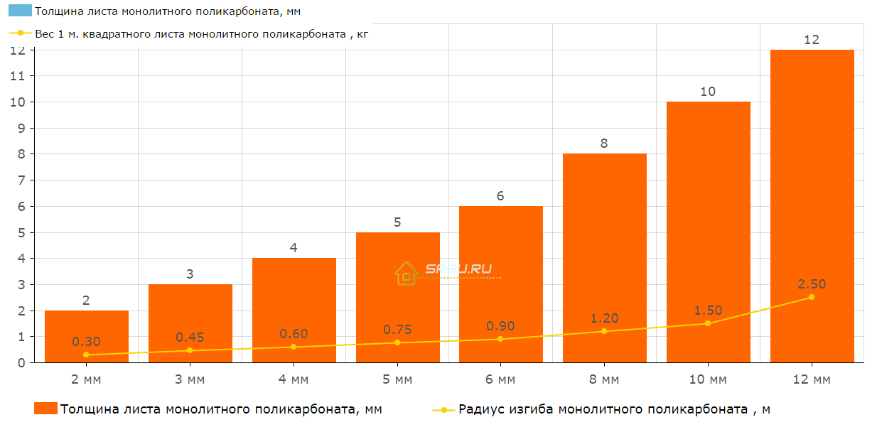 Il convient de garder à l'esprit que les propriétés isolantes du matériau augmentent avec l'épaisseur. Ainsi, ceteris paribus, une feuille de polycarbonate monolithique de 8 mm est presque 20% plus efficace qu'un verre similaire. Une différence encore plus grande est observée lors de l’installation de deux panneaux ou plus séparés par un entrefer. Ces dernières années, ce polymère est de plus en plus utilisé dans le verre au lieu du verre traditionnel.